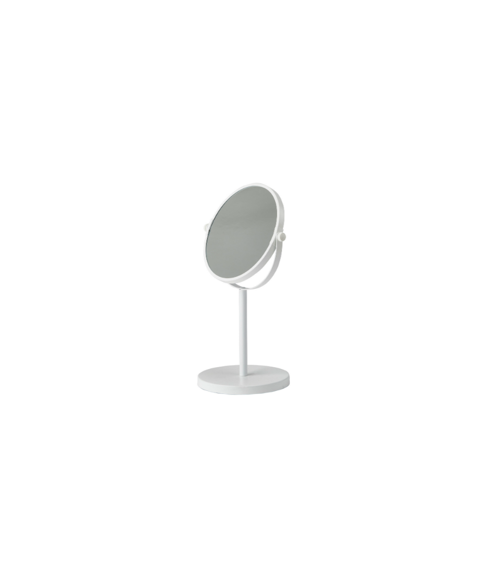 Et flot og eksklusivt kosmetikspejl fra Aquanova. Spejlet har to sider, en med 3 gange forstørrelse og et normat spejl. Designet er stilrent og er lavet i pulverlakeret metal med en hvid overflade.