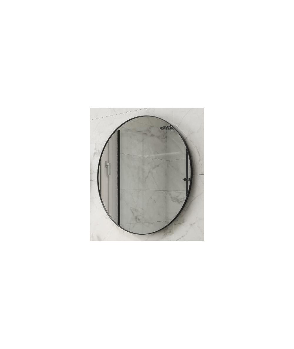 Et flot rundt spejl med sort ramme. Spejlet har et enkelt og elegant udtryk og passer flot til den minimalistiske stil.