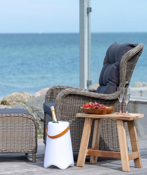 Rå Barcelona Teak skammel i råt genbrugstræ. På skamlen kan du sætte en blomst, en lanterne eller sætte den i entreen som er praktisk når du skal have sko på. Skamlen kan bruges både inde og ude.