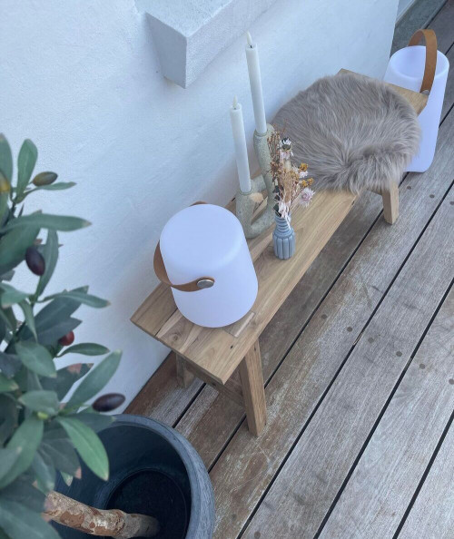 Se denne fine Barcelona Teak Bænk. Er den ikke flot? Bænken er lavet ud af rå genbrusteak og kan derfor variere i udtryk og farve. Bænken kan stå både inde og ude og er med til, at skabe en rustik indretning. Det er en charmende bænk som du både kan bruge som skammel eller pynte op med puder, lanterner, blomster osv.