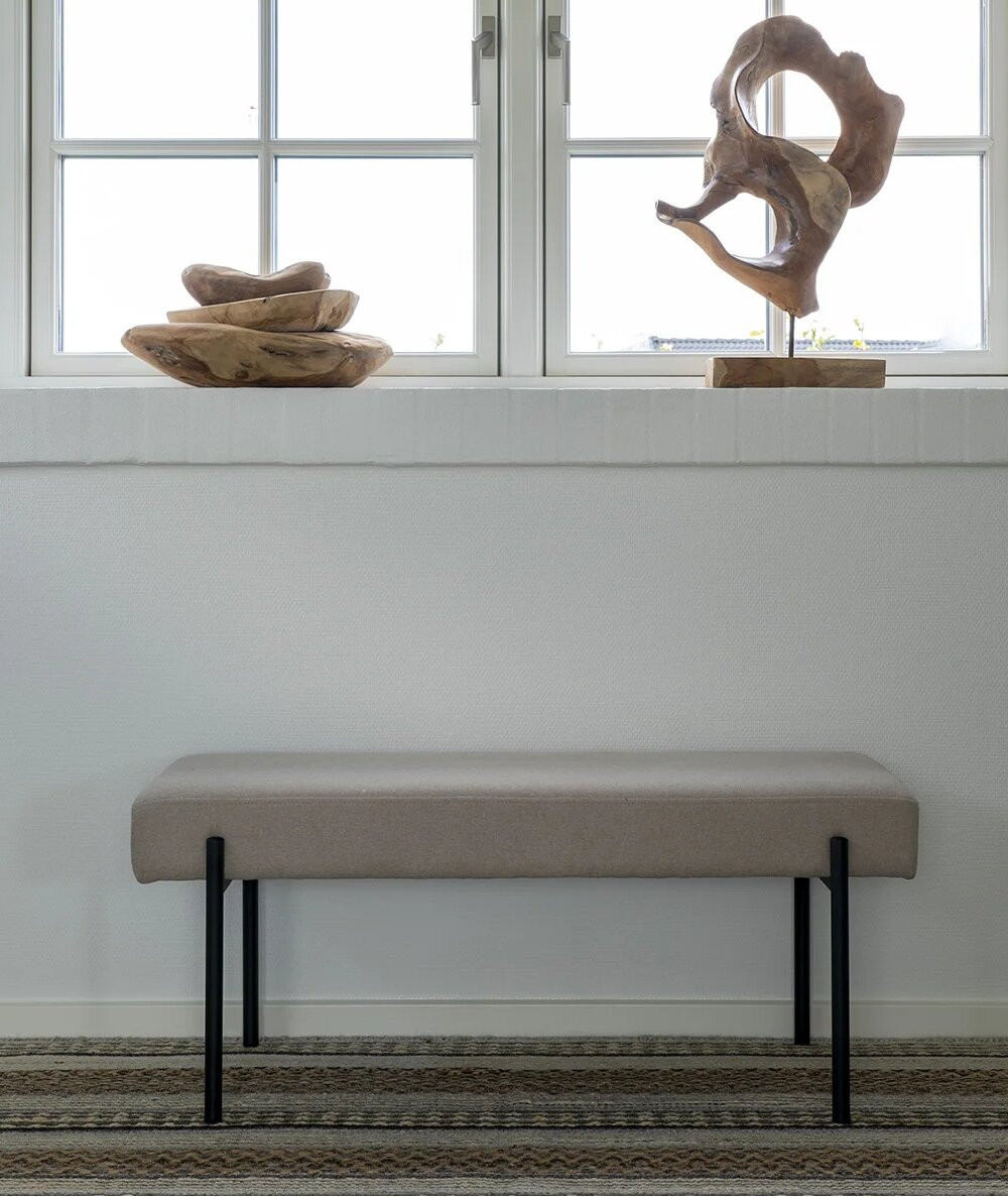 Den enkelte og fine Eloise bænk er lavet i polyester, er brun og har tynde sorte metal ben. Den har et minimalistisk design og måler L100 x B36 x H42,5 cm. Stil den fine bænk i entreen, soveværelset eller stuen hvor den kan hygge op.
