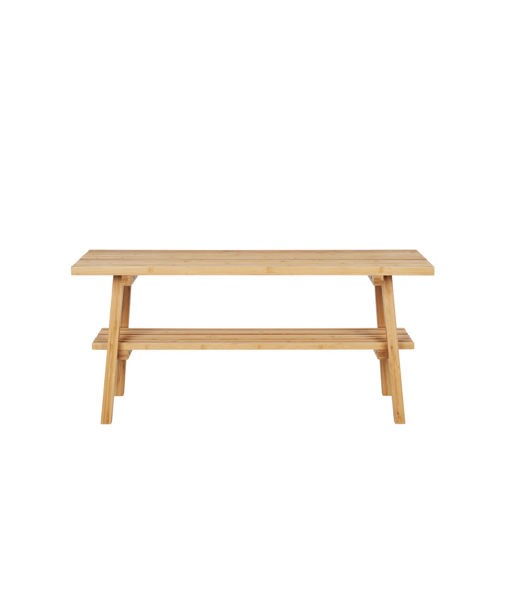 Tilføj et naturligt og stilfuldt element til din indretning med Ember bænken. Fremstillet af holdbart bambus i en smuk naturfarve, bringer denne bænk en varm og organisk følelse til ethvert rum. Med sine kompakte mål på 28x70x45 cm er Ember bænken både praktisk og alsidig, perfekt til mindre rum eller som en ekstra siddeplads i hjemmet.