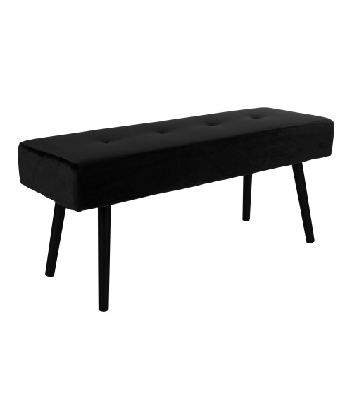 Ønsker du en spændende indretning med fløjl og masser af hygge, så se engang denne fine Skiby bænk fra House nordic. Bænken er lavet i sort fløjl og har sorte ben. Bænken har et enkelt udtryk og dets sorte metal ben giver kontrast og og tilføjer bænken et stilfuldt look.