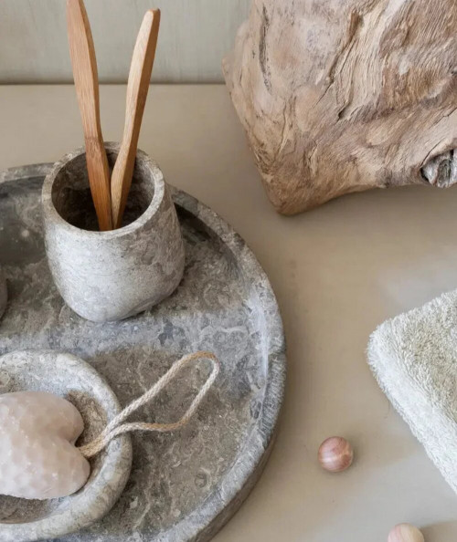 Den flotte runde og elegante bakke er en del af badserien Conor fra Aquanova. Det er en eksklusiv bakke lavet i ægte lys håndlavet marmor. Bakken har et design, der byder ind til wellness stemning. Designet er med til, at skabe ro og velvære på badeværelset og flotte lækre detaljer. Bakken kan bruges til dekoration eller servering og er nem at rengøre.