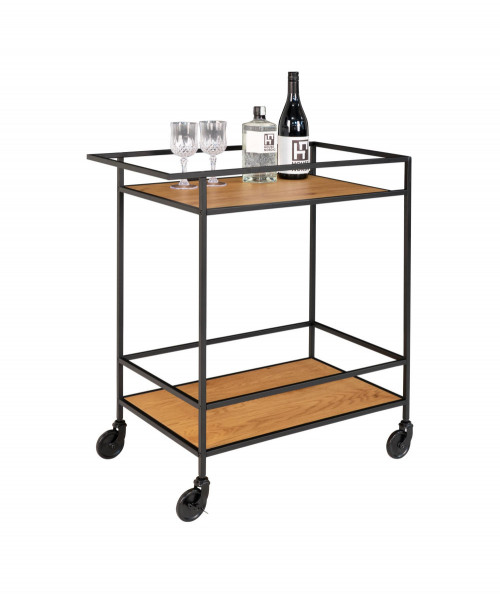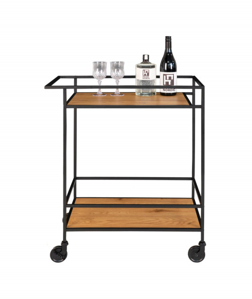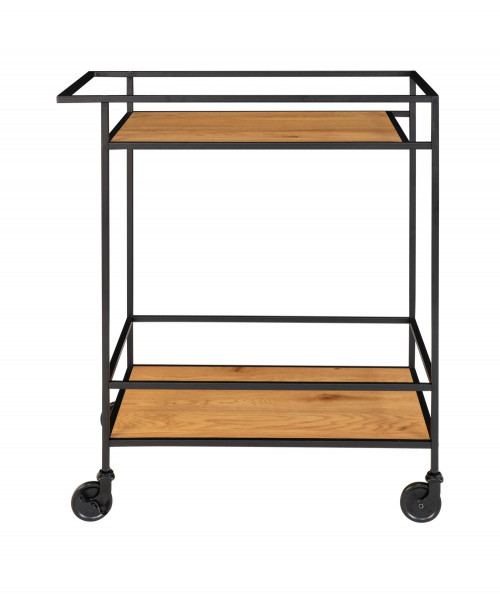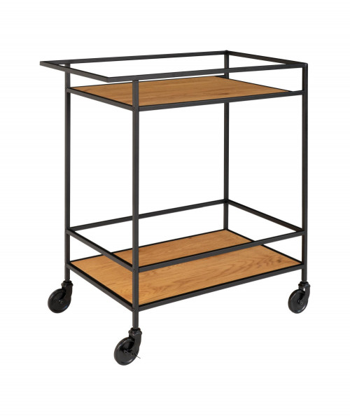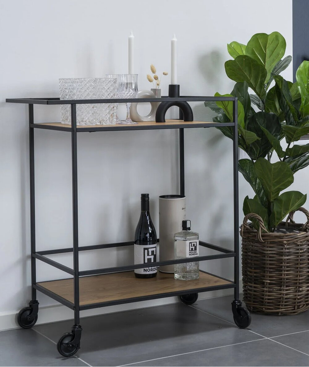 Elegant Vita barvogn fra House Nordic i sort og egetræslook. Den smarte og praktiske barvogn, med det nordiske udseende, kan bruges flere steder i hjemmet. Placer den eksempelvis i stuen, pyntet med blomster og drinksflasker, eller til servering ved festlige lejligheder. Barvognen fås også i helt sort. Barvognen er en del af Vita serien.