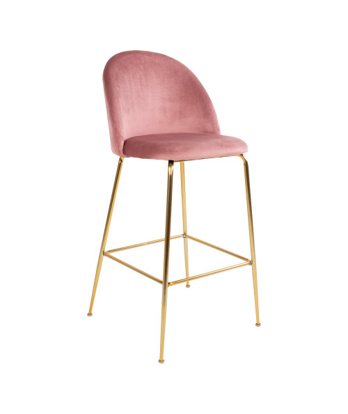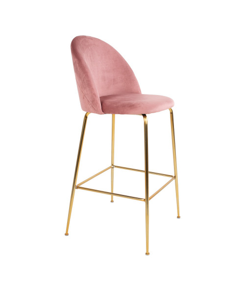 Lausanne Bar Chair - Barstol i rosa velour med ben i messing look