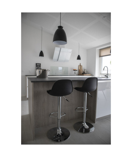 Flot Trondheim barstol fra House Nordic. Barstolen er fremstillet af formstøbt plast, med sæde i sort kunstlæder der giver høj siddekomfort. Selve stellet er af chrome og med fodstøtte, samt hæve/sænke funktion. Med blandingen af chrome og kunstlæder får barstolen et lækkert og luksuriøst udtryk. Trondheim barstolen fås i sort og hvid.