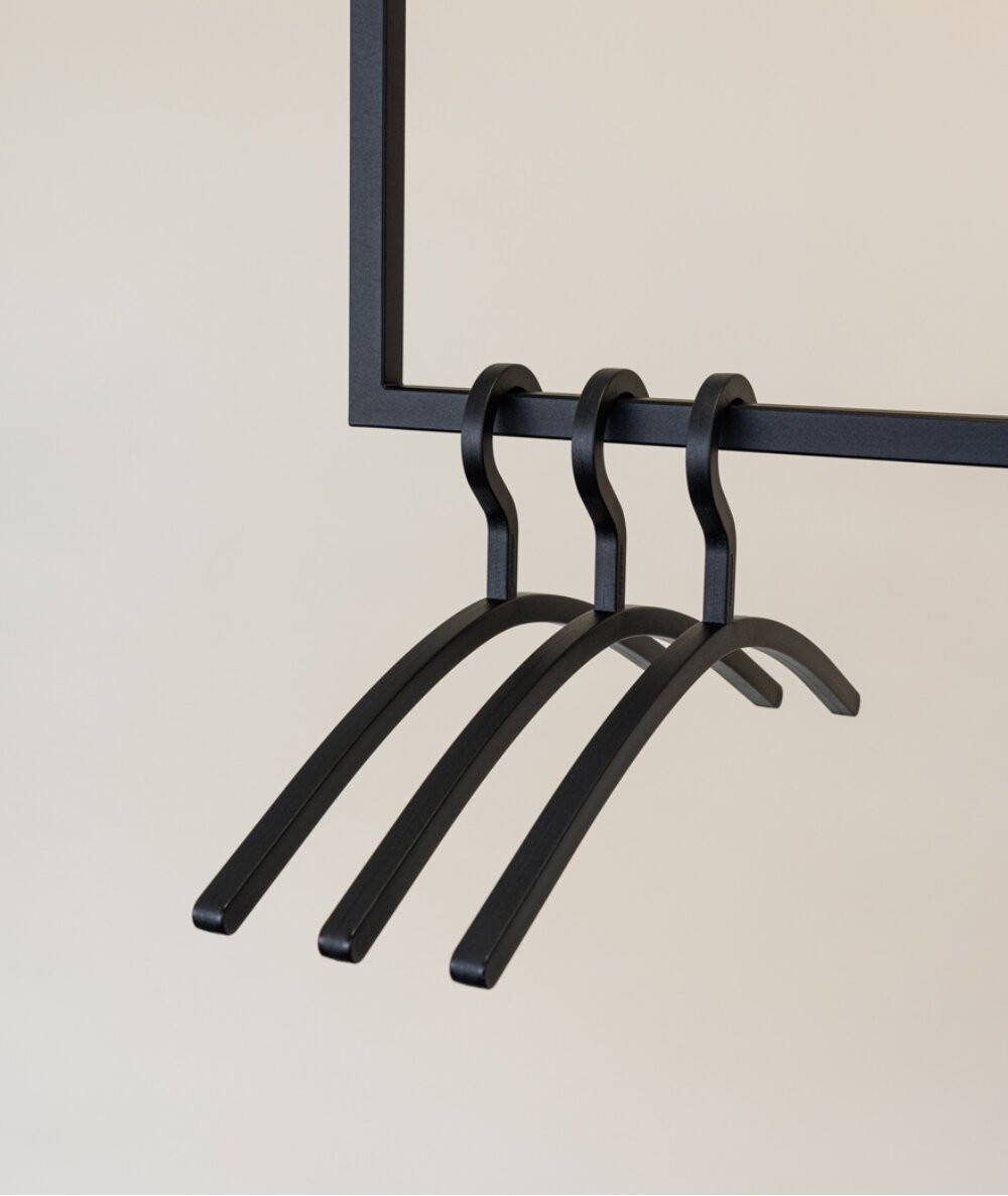 Med det strømlinede sorte design passer CARREE bøjlerne til ethvert rum og indretning. Uanset om dit hjem har en moderne, minimalistisk stil, eller om du foretrækker mere traditionelle indretninger, vil disse bøjler tilføje en sofistikeret, men diskret touch til din garderobe.