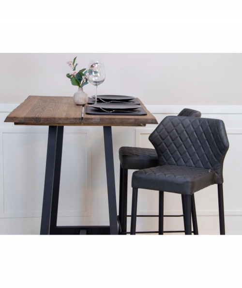 Det fine og enkelte sorte stel er fra House of Sander og er beregnet til et barbord. Måske har du et lille køkken, men ønsker at have et sted, hvor du kan sidde og nyde din morgen kaffe, så kan du sagtens have det stående. Det tager ikke så meget plads. barbordet er også oplagt til at have stående på en restaurant eller cafe.