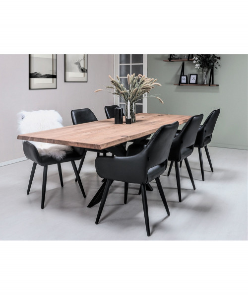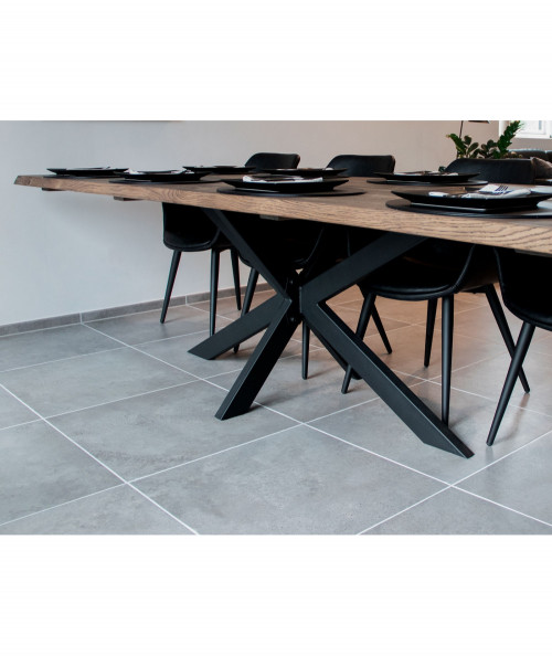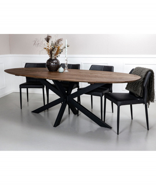 Det fine sorte pulverlakerede stjernestel fra House of Sander hedder Star base og passer smukt til et planke spisebord. Det er sort og lavet i stål. Stellet har stilleskruer, så du altid er sikret et stabilt bord uanset underlag. Det er et stabilt stel og står smukt i kontrast til den varme glød, der er i træet. Stellet giver bordet et smukt og elegant udtryk.