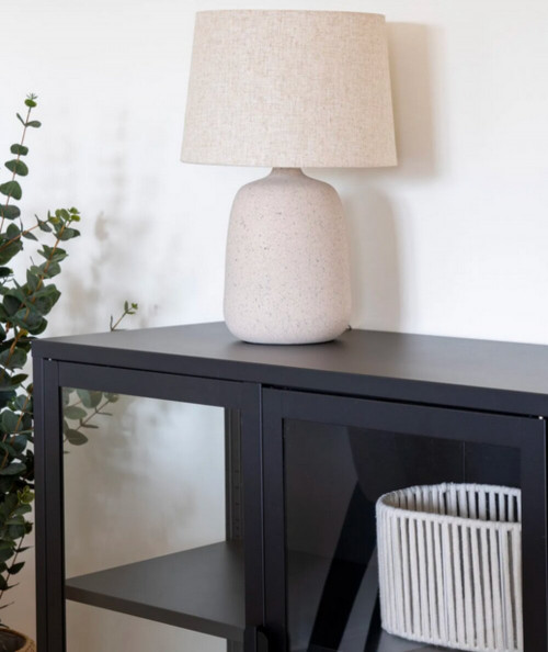 Croft Bordlampen er en elegant og stilren tilføjelse til ethvert hjem. Denne bordlampe er fremstillet i fiberclay og kommer i en smuk, afdæmpet stone beige farve, der passer perfekt ind i moderne såvel som klassiske indretninger. Lampens base har en blød, afrundet form, som tilfører et organisk element til rummet, mens lampeskærmen i tekstil skaber et varmt og behageligt lys.