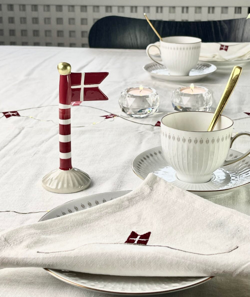 Ønsker du at skabe et hyggeligt fødselsdagsbord, kan du lave et hyggeligt stilleben med en buket blomster, fyrfadsstager og dette søde og fine flag. Flaget kan også bruges til konfirmationer, studentergilde eller noget helt tredje.