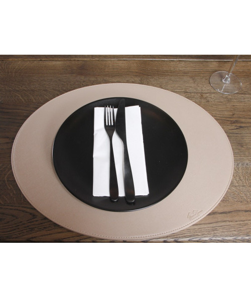 Oval dækkeserviet i beige med hård overflade