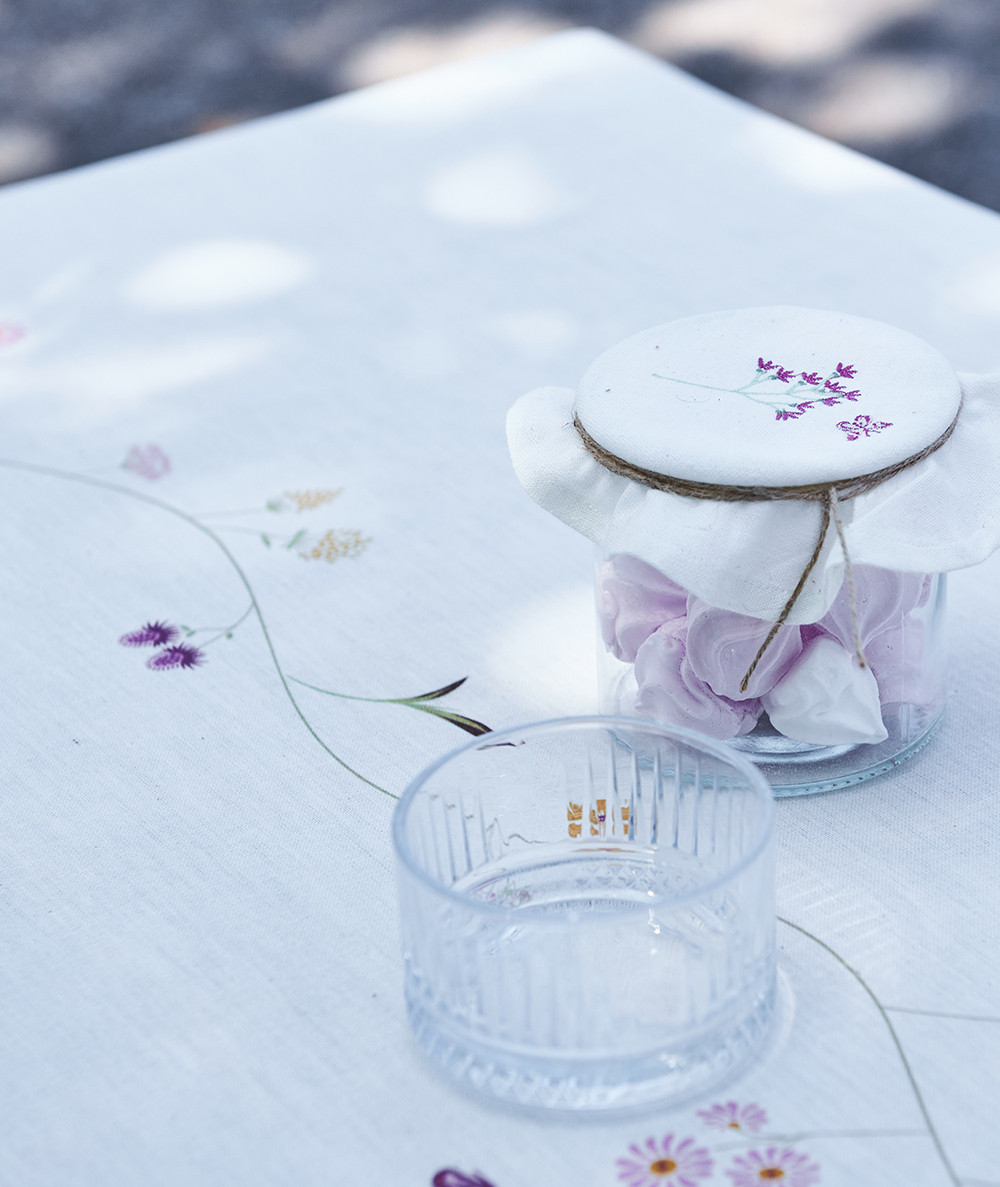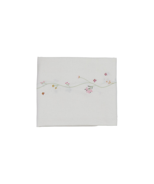 Dugen er lavet i bomuld og hør og blomsterbroderiet er udført med stor præcision og fokus på detaljer, hvilket sikrer, at dugen fortsætter med at se fantastisk ud, selv efter mange års brug.
