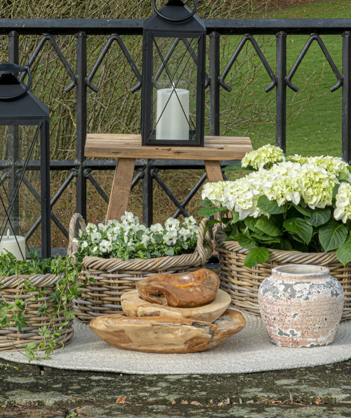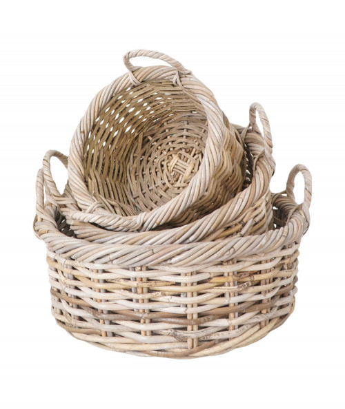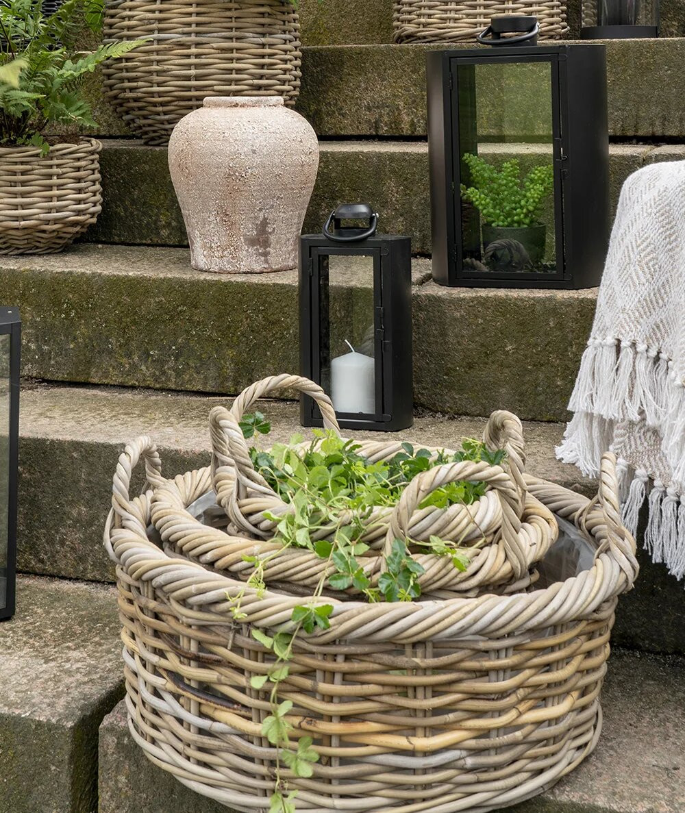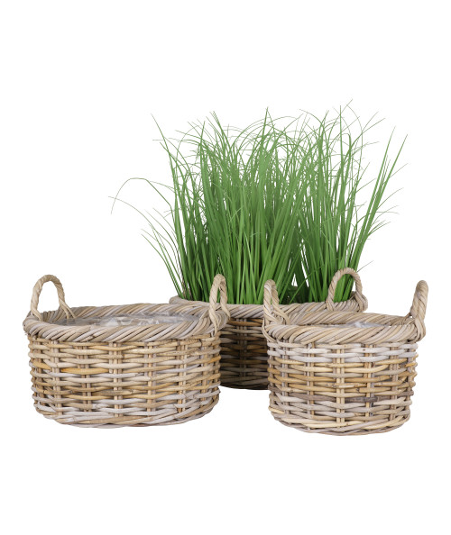 Ønsker du rustik stemning i dit hjem både inde og ude så se engang disse fine Arianne kurve. Kurvene består af 3 stk og er lavet i kubu rattan og har plastik indeni. Det vil sige, at de både kan stå inde og ude. Du skal selv prikke hul i plastikken, såfremt de skal stå udenfor. Kurvene kan bruges til evt. kunstige planter, til puder og plaider eller til legetøj på børneværelset.