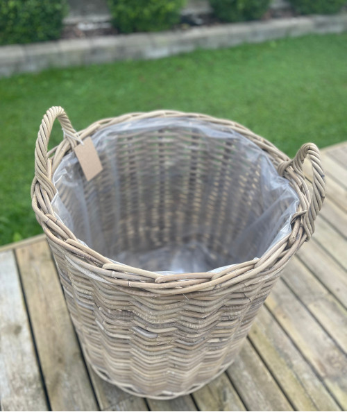 Den flotte Helena kurv er lavet i rattan. Den har en rigtig fin størrelse, som gør at du kan plante både opstammet og mindre planter i kurven. Kurven får en rigtig flot patina, når den har stået ude i et stykke tid. Helena kurven har samtidig en indre plastpose, så jord og vand ikke kommer ud af kurven.