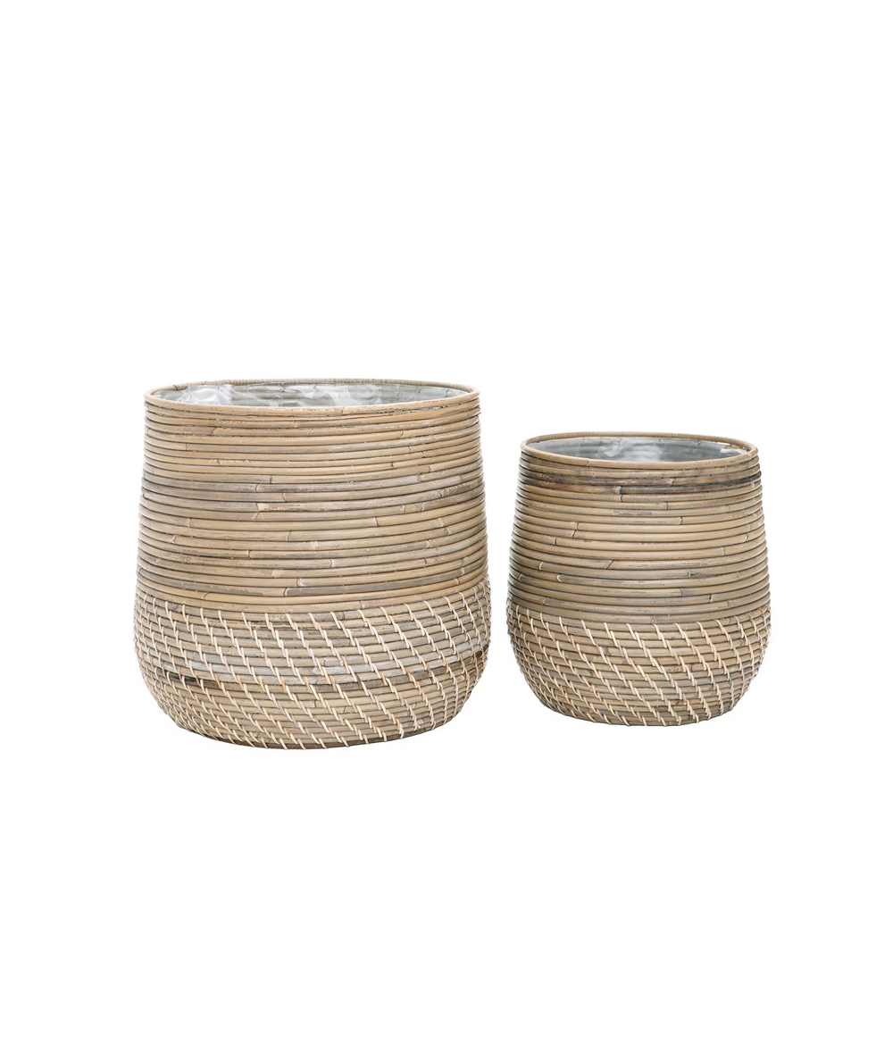 Sættet består af to kurve i forskellige størrelser, hvilket giver dig fleksibilitet til at bruge dem på mange måder i din indretning. Med deres unikke vævede design og smukke naturfarve passer de perfekt ind i både en skandinavisk, boheme eller rustik stil.