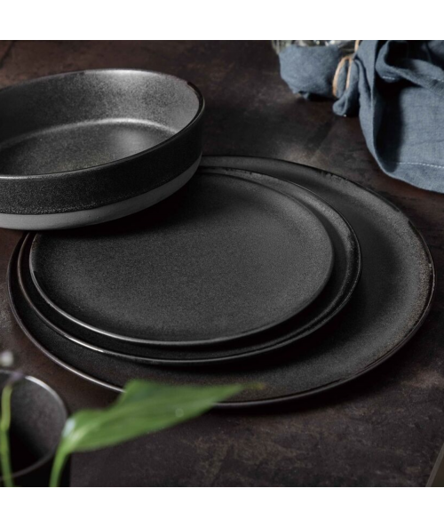 RAW Titanium Black frokosttallerken har et flot æstetisk og minimalistisk design. Den sorte, matte finish kombineret med det klassiske runde design giver en stilfuld og moderne stil, der passer til enhver indretning. Den fine frokosttallerken er lavet stentøj med risefri glasur, der er kendt for sin holdbarhed, hvilket gør det til et ideelt valg for hverdagsbrug. Det flotte design er inspireret af det niende mest udbredte element i jorden skorpe. Det er særlig stærkt, kraftfuldt og let. Dæk et sofistikeret, unikt og råt bord, eller mix det. Glasuren varierer i farve og tekstur på grund af den kemiske proces i ovnen. Her udvikler glasuren sig forskelligt fra del til del, og derfor varierer stellet i farvemætning, krystallisering og lagdeling.