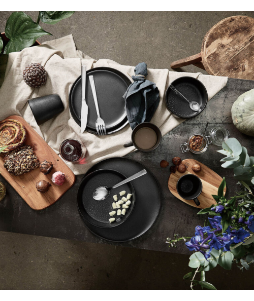 RAW Titanium Black frokosttallerken er ikke bare en fryd for øjet, men den er også exceptionelt holdbar og funktionalitet. Den er lavet af stentøj, som er kendt for at være stærk og holdbar, hvilket betyder at det kan modstå hverdagens slitage.