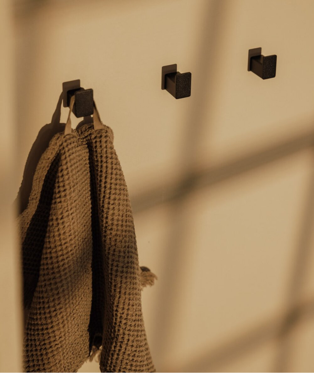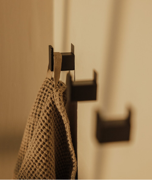 Den elegante Palo knage er en firkantet knage, der både har funktionalitet og stil. Den er yderst holdbar og kan bruges til at hænge alt fra tasker og overtøj til nøgler og smykker. Sættet består af 3 sorte kroge i en simpel, men sofistikeret design, der nemt kan integreres i enhver indretning.