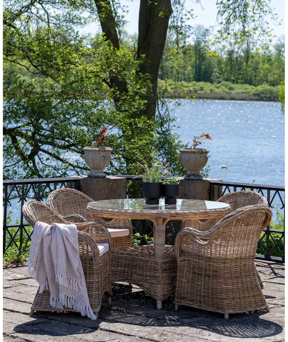 Forvandl din terrasse eller have til et elegant fristed med Larisa havemøbelsættet. Med sit smukke håndflettede rattan og en naturlig, tidløs æstetik skaber dette sæt en hyggelig og luksuriøs stemning, hvor du kan nyde lange, afslappende måltider med familie og venner.