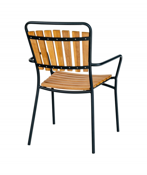 Den flotte Cleveland spisebordsstol passer perfekt til Spisebordet i samme design. Stolene er lavet i teaktræ og metal, som komplimenterer hinanden flot. Den varme glød står flot i kontrast til den sorte metal farve. Stolene har god siddekomfort og har et elegant og smart design, som skaber blikfang på terrassen.