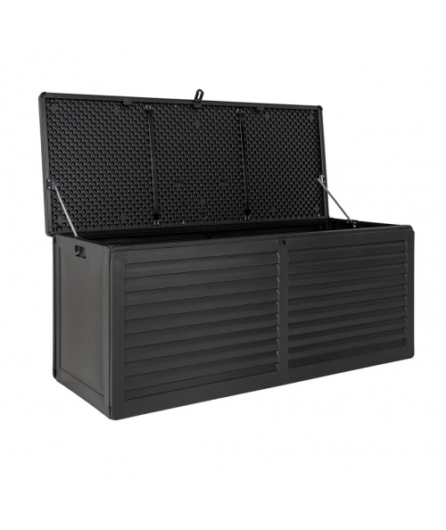 Det er den perfekte løsning til opbevaring af dine udendørs hynder, puder og andre tilbehør. Denne rummelige hyndeboks kombinerer funktionalitet med æstetik på en elegant måde. Den er lavet i sort plastik og måler B146,5 x L61 x H64,5 cm. Hyndeboksen er designet til at beskytte mod vejr og vind, samtidig tilføjer den et enkelt og fint design til din udendørs indretning. Skab et organiseret og indbydende uderum med vores Dubrovnik hyndeboks. Bestil din hyndeboks i dag og nyd bekvemmeligheden ved at have alt dit udendørs tilbehør lige ved hånden.