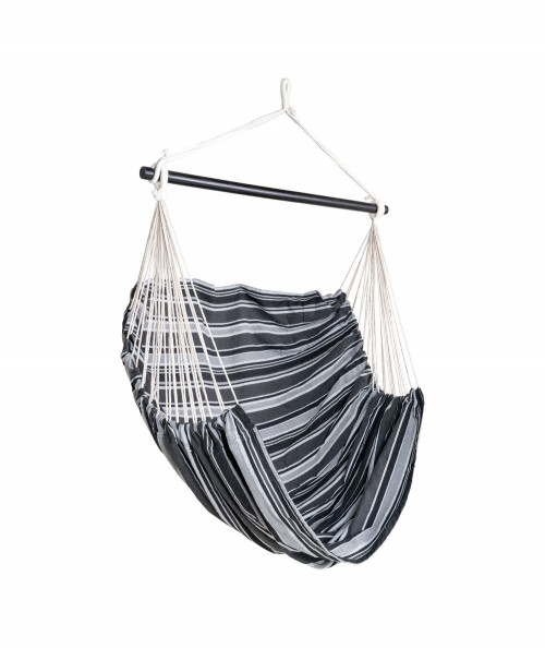 Skab et fredfyldt og hyggeligt rum i dit hjem eller i haven med vores fine hængestol. Hængestolen er lavet af 85% bomuld, 15% polyester og træ. Hæng den op i træet ved dit foretrukne tilflugtssted og slap af imens du læser en god bog.