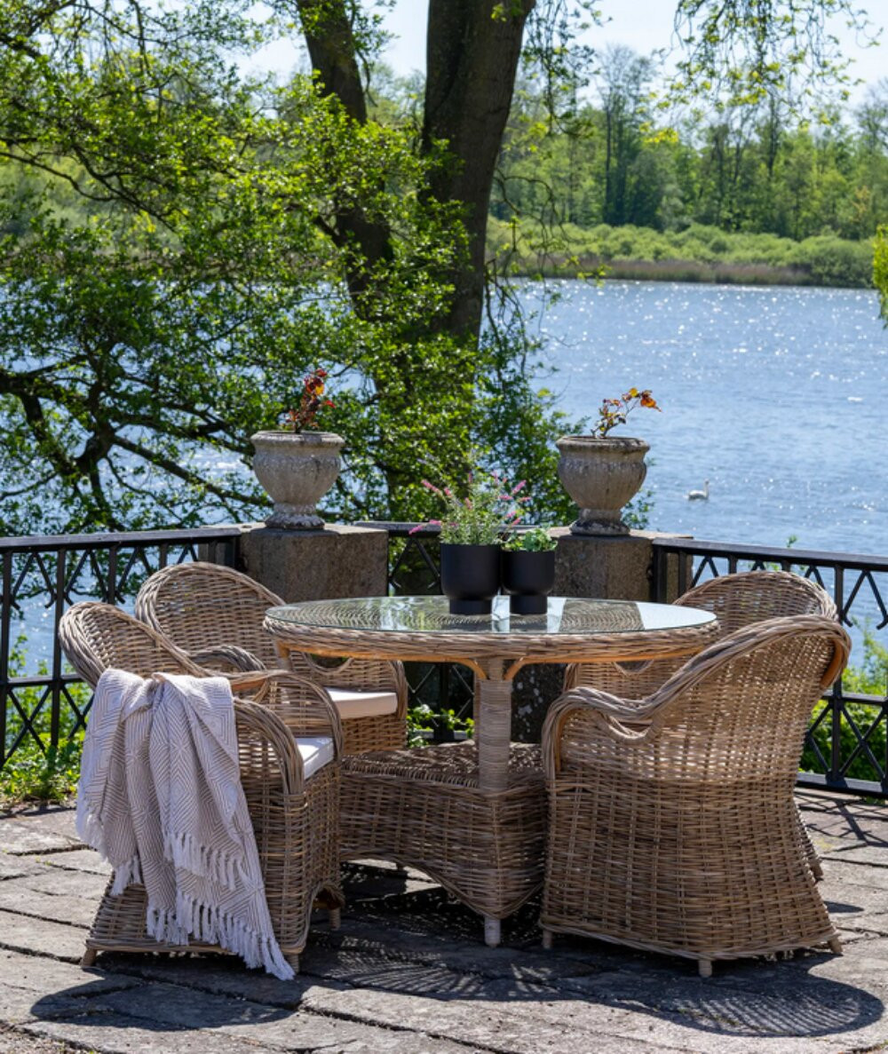 - Rattan, stål og polyester