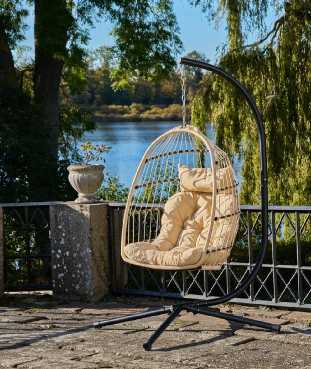 Patras hængestol er den perfekte kombination af stil og komfort. Med sit moderne design og naturlige nuancer tilføjer den et eksklusivt touch til enhver terrasse, altan eller have. Hængestolen har et elegant sort metalstativ, der sikrer et stilrent udtryk og en stabil konstruktion. Uanset om du ønsker at nyde en rolig stund i solen eller skabe en hyggelig krog i dit hjem, er denne hængestol et ideelt valg.