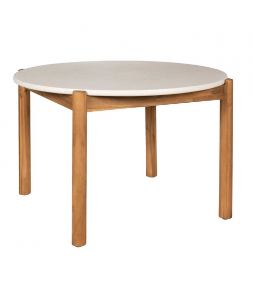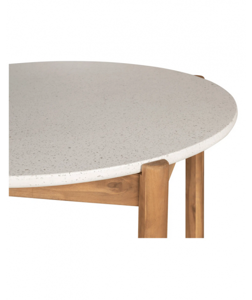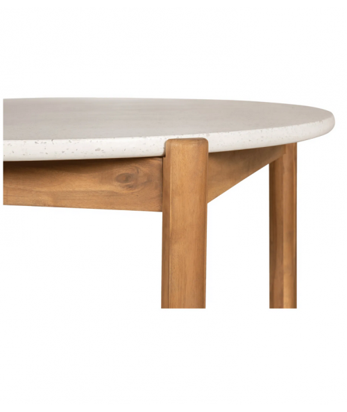 Rundt terracina spisebord i akacietræ og terazzo bordplade