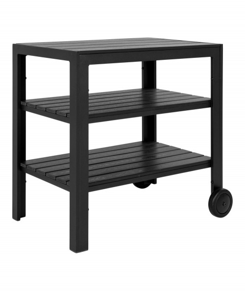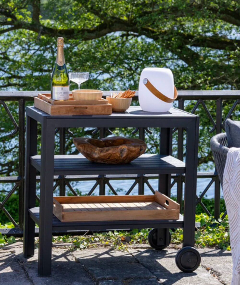 Skab hyggelig stemning med den flotte Taormina serveringsvogn. Brug den til hyggeaftener på terrassen. Med sit robuste design er serveringsvognen praktisk. Brug vognen til servering af mad og drikke og brug den til at præsentere retter, drikkevarer og snacks under middage, fester eller sammenkomster. Du kan også bruge serveringsvognen til at vise flotte dekorative blomster frem eller bruge den til at organisere og opbevare køkkenredskaber, tallerkner, glas eller andre genstande. Placer serveringsvognen som en forlængelse af spisebordet udenfor og lad den blive midtpunkt i dit uderum.