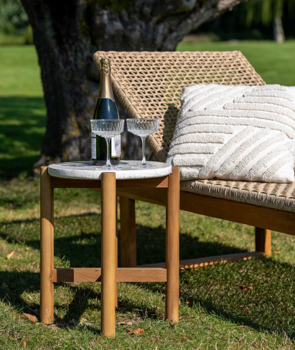 På terrassen, altanen eller i haven er Terracina sidebordet et smukt og funktionelt valg. Det kan bruges som et lille bakkebord til drinks, planter eller som en del af en elegant loungeindretning. Materialerne er robuste og velegnede til udendørsbrug, så du kan nyde det i mange sæsoner.