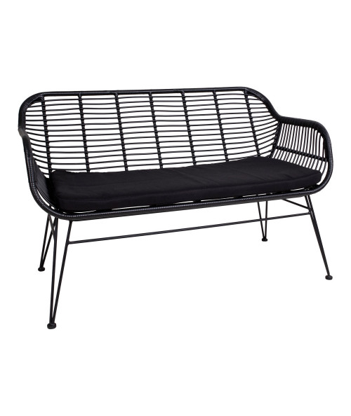 En flot Trieste sofa i sort fremstillet i polyrattan som kan holde til at stå udenfor. Sofaen har et klassisk og smukt design hvilket giver den et eksklusivt udtryk. Sofaen vil stå flot på terrassen og har en fin størrelse, så den er nem at flytte rundt med.Sofaen er i sig selv dekorativ og bidrager til hyggelig stemning på terrassen. Så hyg op med puder og nyd dine sommerdage/aftener på terrassen. Den fine sofa passer perfekt til Trieste havestolen som du også kan finde på shoppen. Sofaen kan variere lidt i farve, udførelse og størrelse, da produktet delvist er håndlavet.