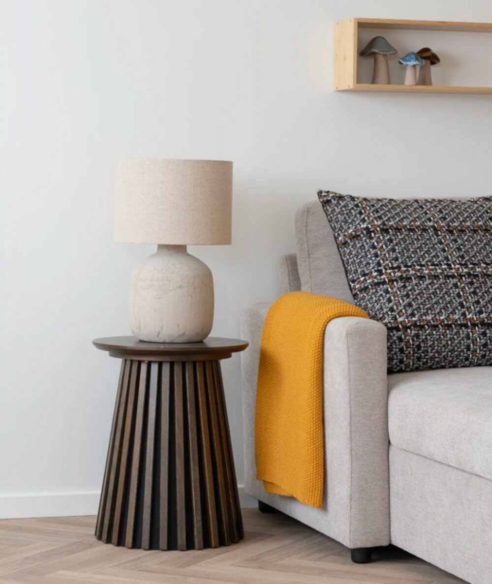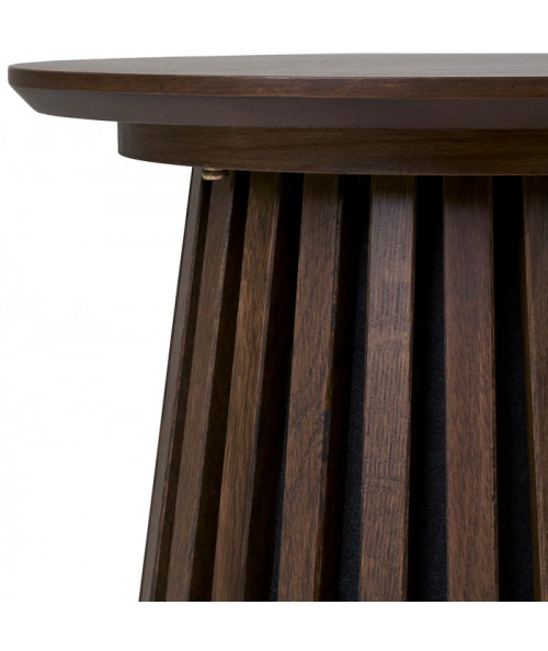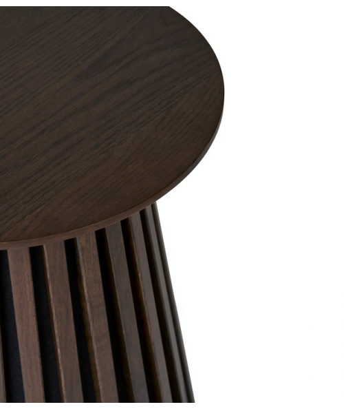 Osaka Hjørnebordet er en smuk kombination af egefiner og MDF, designet til at tilføje varme og elegance til ethvert rum. Med sine mål på ø40x50 cm er dette bord den perfekte størrelse til at passe ind i forskellige indretningsstile. Den "smoked" finish giver bordet et raffineret udtryk, der gør det til et ideelt valg for dig, der ønsker at skabe en hyggelig og sofistikeret atmosfære i dit hjem.