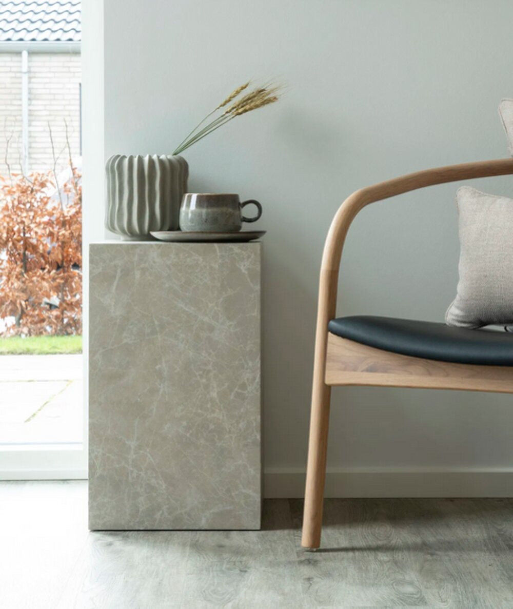 Skab elegant stemning i dit hjem med Prague Hjørnebordet. Dette smarte og elegante hjørnebord er udført i et sofistikeret marmor-look i en behagelig beige farve, der komplementerer enhver indretning. Med sine kompakte mål på 30x30x50 cm er det ideelt til små rum eller som et stilfuldt supplement til din sofa eller lænestol.