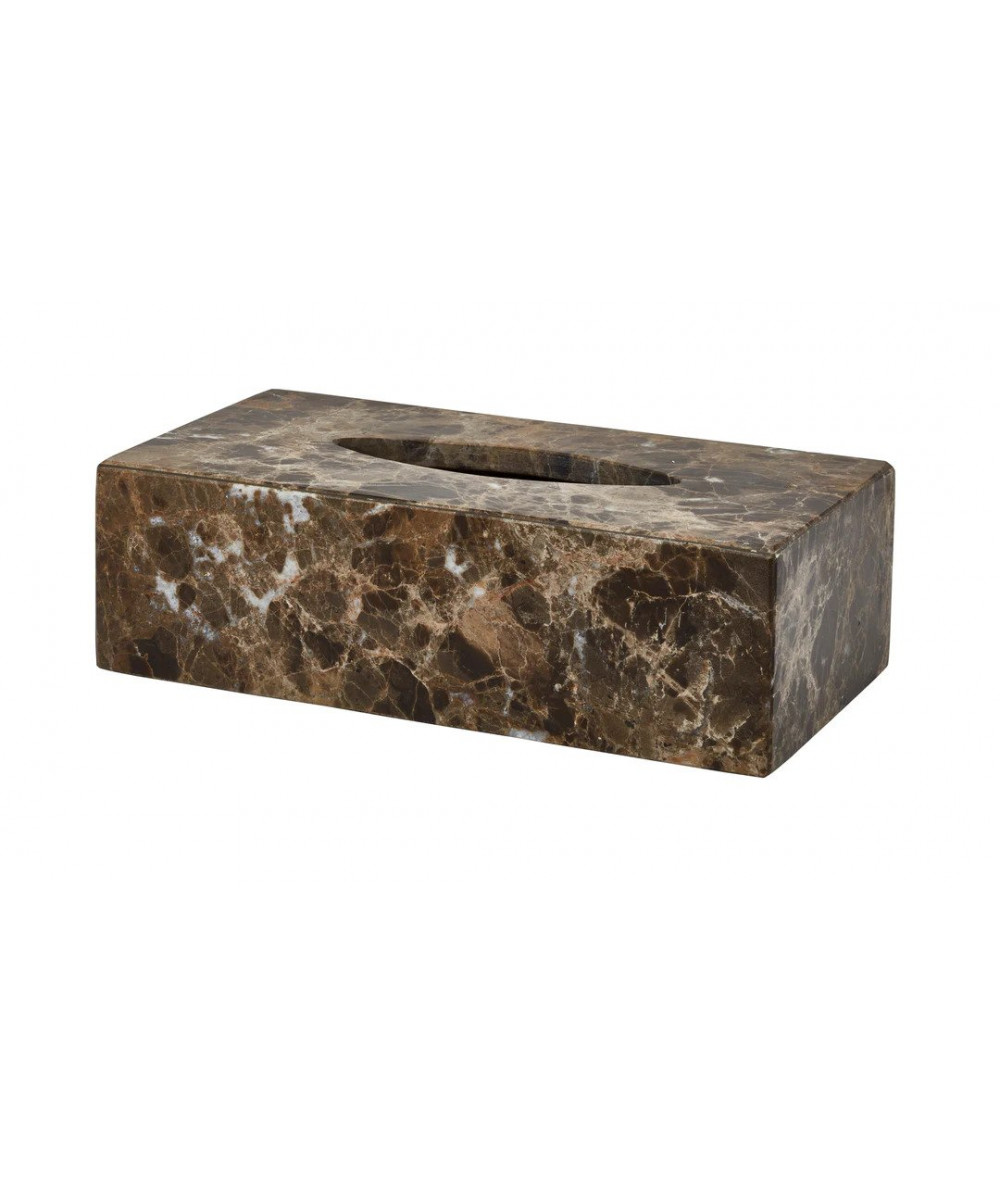 Den flotte Hammam Kleenex holder fra Aquanova er lavet i brun natur marmor. Kleenex holderen kan variere i udseende da 2 ikke er ens. Det kommer helt an på hvor i marmorklippe stenen er taget fra. Kleenex holderen har et eksklusivt look og står smukt på badeværelset. Kleenex holderen er en del af Hammam serien, så der findes toiletpapirholder, sæbedispenser, tandkrus og meget mere i samme serie. Kleenex holderen har et flot design og står smukt på badeværelset eller på spisebordet.