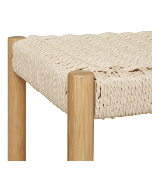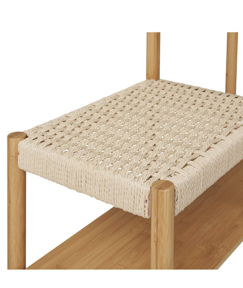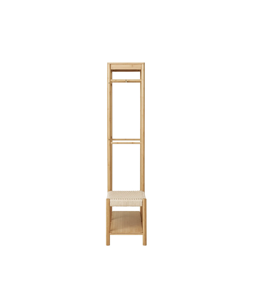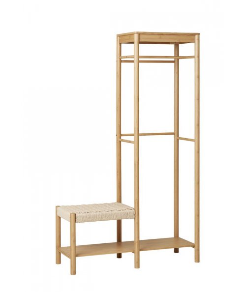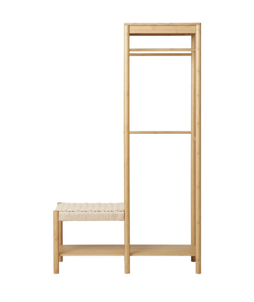 Ember Tøjstativet kombinerer funktionalitet og æstetik på smukkeste vis. Fremstillet af bambus og naturflettet papirsnor, bringer dette tøjstativ et varmt og indbydende udtryk til din indretning med sine naturlige materialer og farver. Det slanke design passer perfekt ind i entreen, hvor det både fungerer som et stilfuldt sted at hænge jakker og frakker samt en praktisk bænk, hvor du kan sidde og tage skoene på.