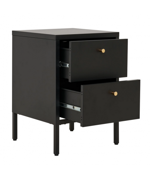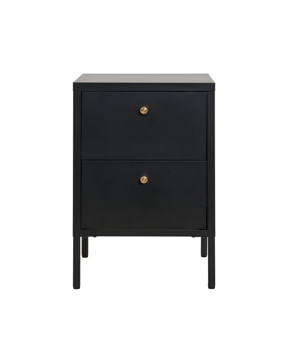 Dalby Kommode er en stilren og funktionel løsning til opbevaring i dit hjem. Kommoden er fremstillet i sort stål og har to rummelige skuffer, der giver dig rigelig plads til at organisere dine ejendele. Med sine kompakte mål på 40x40x59,5 cm passer den perfekt ind i mindre rum, som eksempelvis soveværelset, entréen eller stuen.