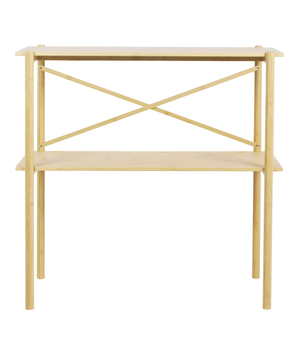 Det naturlige bambusmateriale tilføjer en varm og rolig atmosfære, Hvilket gør det nemt at integrere bordet i en nordisk eller moderne indretning. Konsolbordets enkle design og praktiske hylde giver dig både opbevaringsplads og en smuk platform til at fremvise dine dekorative genstande.