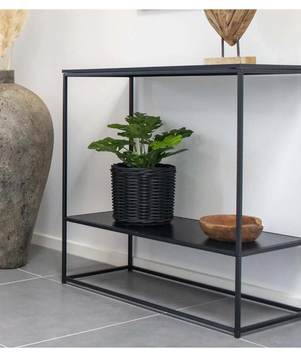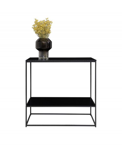 Den fine Vita konsolbord er fra House Nordic og er lavet i sort stål, melamin og spånplade. Det fine konsolbord har et enkelt og fint design og passer smukt ind til f.eks. entreen hvor du evt. kan hænge et spejl på væggen. Vi har også et udvalg af spejle som du kan finde her på shoppen. Lav evt. et lille stilleben med evt. glas lysestager, vase med en tørret buket. Det er med til at skabe en hyggelig stemning i dit hjem. konsolbordet fås også med træ bordplade.