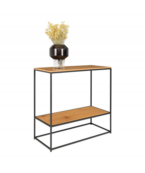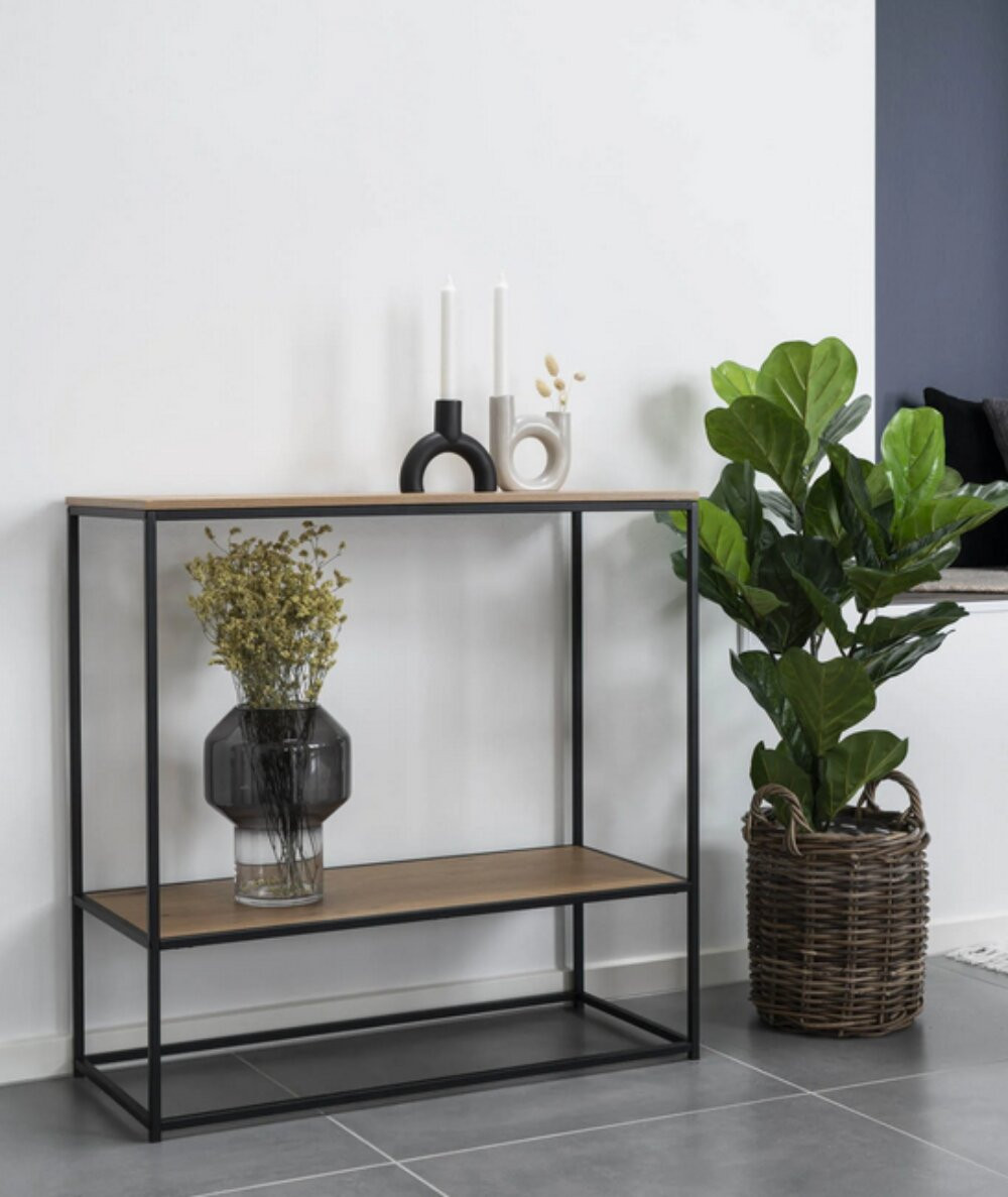 Den fine Vita konsolbord er fra House Nordic og er lavet i sort stål og i look a like træ. Det fine konsolbord har et enkelt og fint design og passer smukt ind til f.eks. entreen hvor du evt. kan hænge et spejl på væggen. Vi har også et udvalg af spejle som du kan finde her på shoppen. Lav evt. et lille stilleben med evt. glas lysestager, vase med en tørret buket. Det er med til at skabe en hyggelig stemning i dit hjem. konsolbordet fås også med træ bordplade.