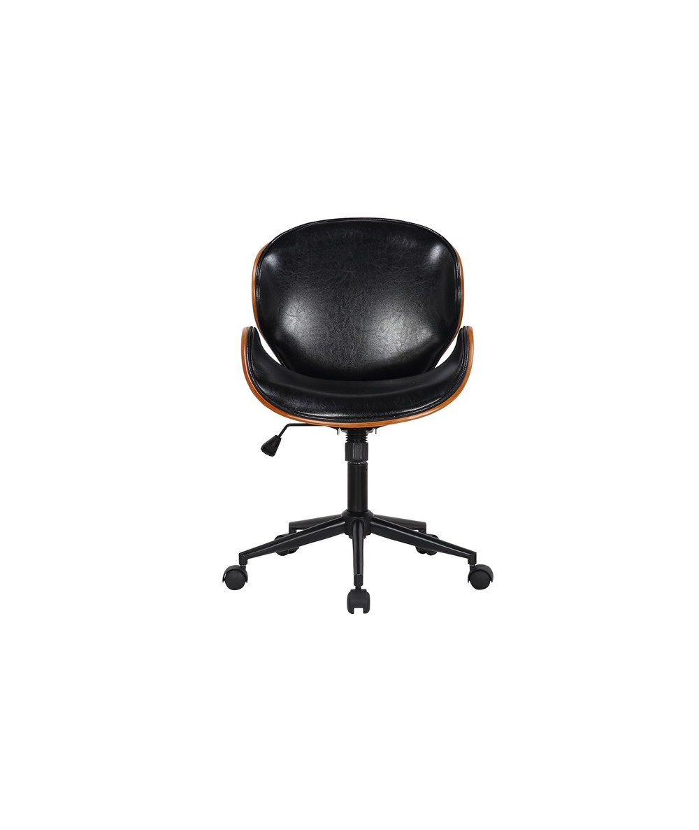 Denne Rind kontorstol har det fedeste design. Kontorstolen er lavet i mørk træ, og har et elegant og stilet udtryk. En lækker kontorstol der tilføjer dit hjem eksklusiv stemning. Kontorstolen er sort foran, og bagpå ryglænet er der den flotteste træ finish.
