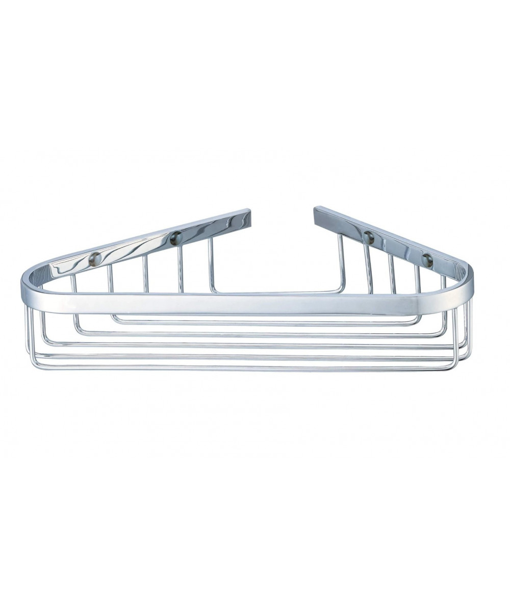Denne fine dekorative hjørnekurv med lige front hænger flot i brusenichen. Her kan du organisere dine sæber og shamoo, så det ikke roder. Med denne hjørnekurv skaber du orden. Den er lavet af forkromet messing og ruster derfor ikke. En praktisk og flot hjørnekurv.
