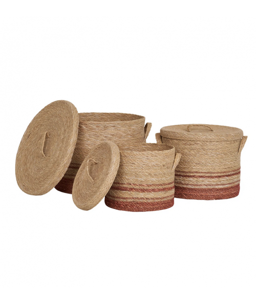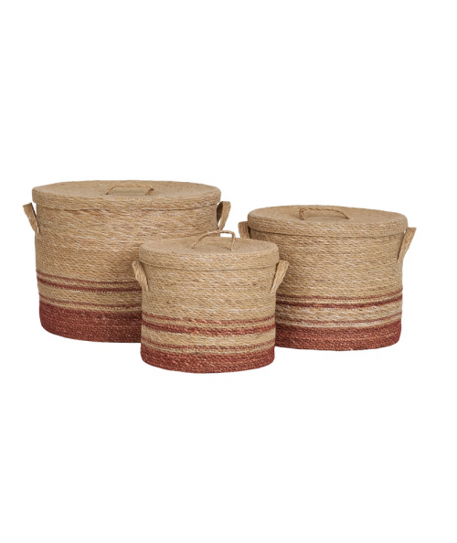 Hver kurv er håndflettet i søgræs, hvilket giver en autentisk og organisk fornemmelse. De forskellige størrelser gør dem alsidige og velegnede til opbevaring af alt fra tæpper og puder til legetøj, magasiner eller accessories.