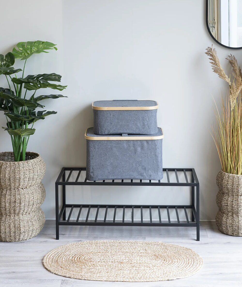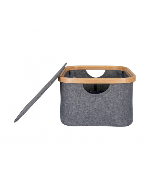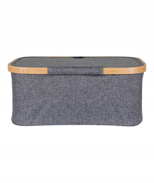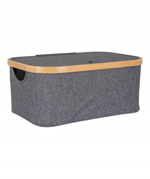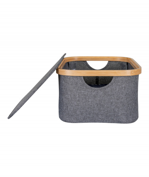Caroline kurv med låg i mørkegrå stof og kant af bambus