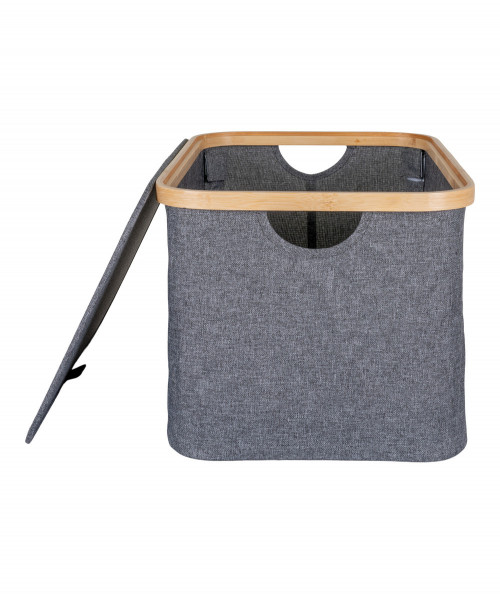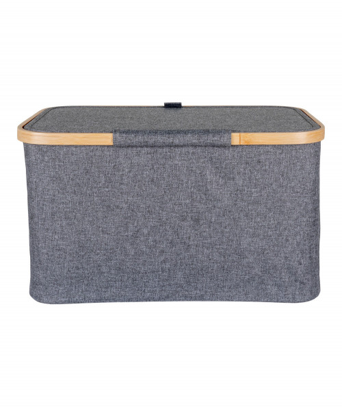 Caroline stor kurv med låg i mørkegrå stof og kant af bambus