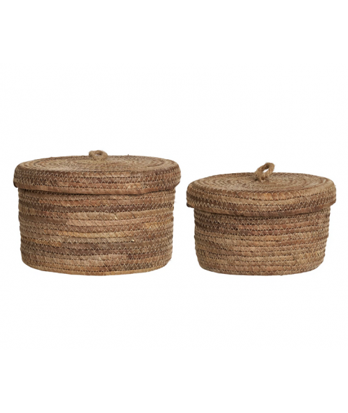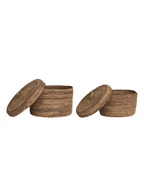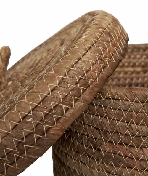 Desio kurvene er lavet af naturligt bananflet, hvilket gør dem både miljøvenlige og holdbare. Deres smukke gyldne farve og rustikke tekstur gør dem til en alsidig og stilfuld opbevaringsløsning, der passer ind i ethvert hjem.