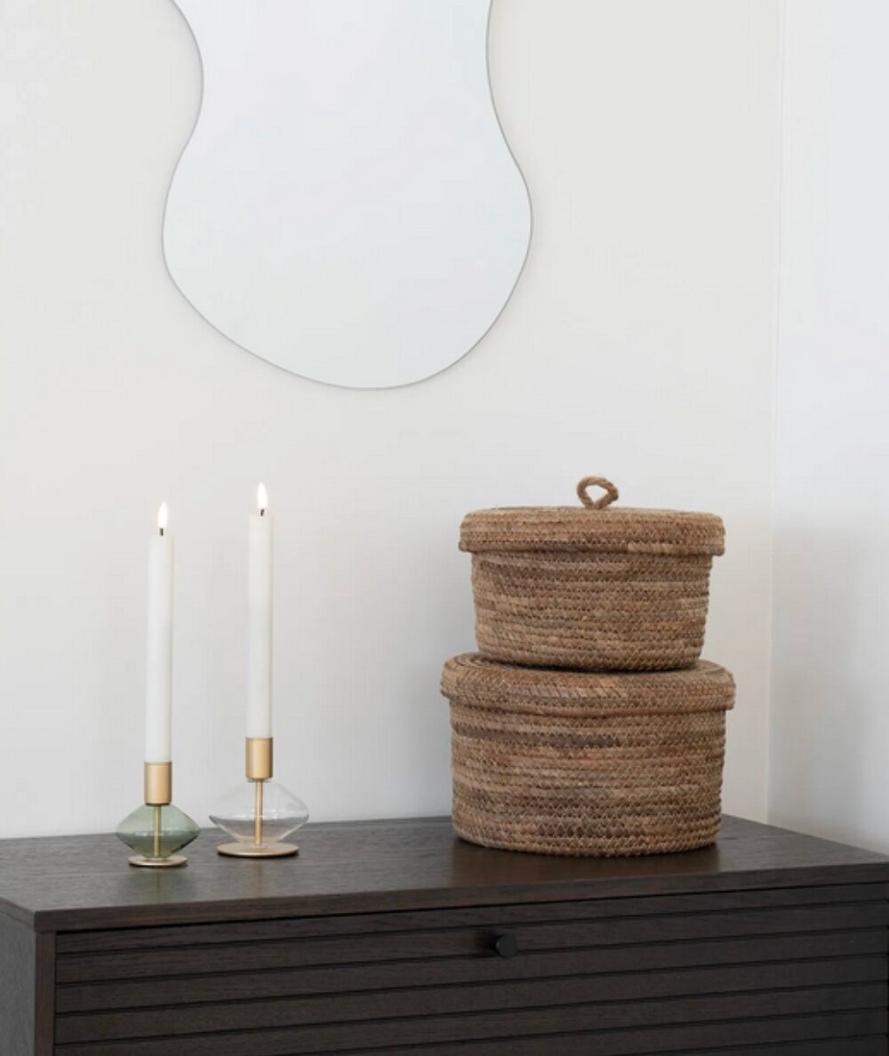 Placer kurvene ved siden af sofaen til opbevaring af tæpper, magasiner eller fjernbetjeninger. De skaber en hyggelig og organiseret atmosfære. Brug kurvene til at gemme handsker, huer og nøgler væk, så de altid er lige ved hånden, men stadig ude af syne. Perfekte til at holde orden i dit soveværelse. Brug dem til opbevaring af smykker, tørklæder eller andre småting, du vil have nem adgang til. Kurvene kan også være ideelle til at opbevare toiletartikler, håndklæder eller andre badeværelsesartikler, alt imens de tilføjer et organisk touch til rummet.