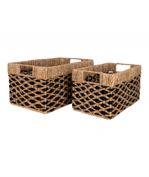De flotte Diane kurve består af 2 stk i to forskellige størrelser. Kurvene er lavet i søgræs og har et dekorativt og flot mønster i sort og natur farve. Kurvene kan bruges til opmagasinering af noget, som du har liggende i gemmerne, som du ønsker at skjule i indretningen. Du kan have kurvene stående på en reol.